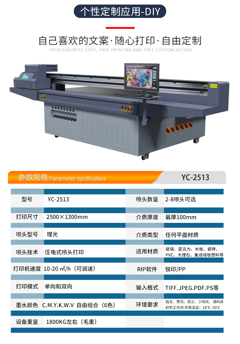高科技研發的一款承載多功能、多行業、多領域的服務設備,性能穩定、精度好、速度快、壽命長,本機采用理光噴頭,適用廣告加工、工藝品行業、裝飾畫行業、手機殼彩印制作等行業。 可完全代替絲網印刷,移印,轉印,水轉印,柯式印刷等傳統人藝工藝,充分發揮其優勢降低企業成本。