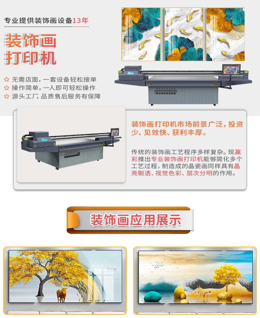 高科技研發的一款承載多功能、多行業、多領域的服務設備,性能穩定、精度好、速度快、壽命長,本機采用理光噴頭,適用廣告加工、工藝品行業、裝飾畫行業、手機殼彩印制作等行業。 可完全代替絲網印刷,移印,轉印,水轉印,柯式印刷等傳統人藝工藝,充分發揮其優勢降低企業成本。
